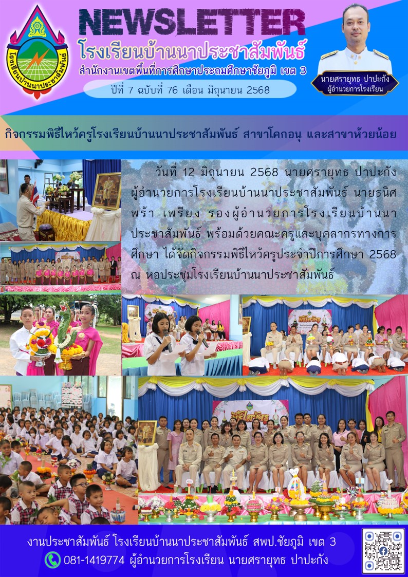 กิจกรรมพิธีไหว้ครูโรงเรียนบ้านนาประชาสัมพันธ์ สาขาโคกอนุ และสาขาห้วยน้อย