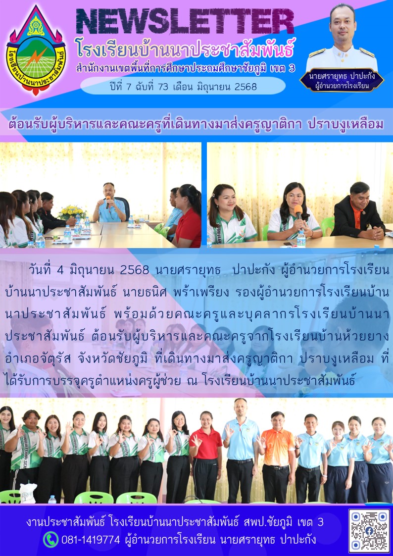 ต้อนรับผู้บริหารและคณะครูที่เดินทางมาส่งครูญาติกา ปราบงูเหลือม