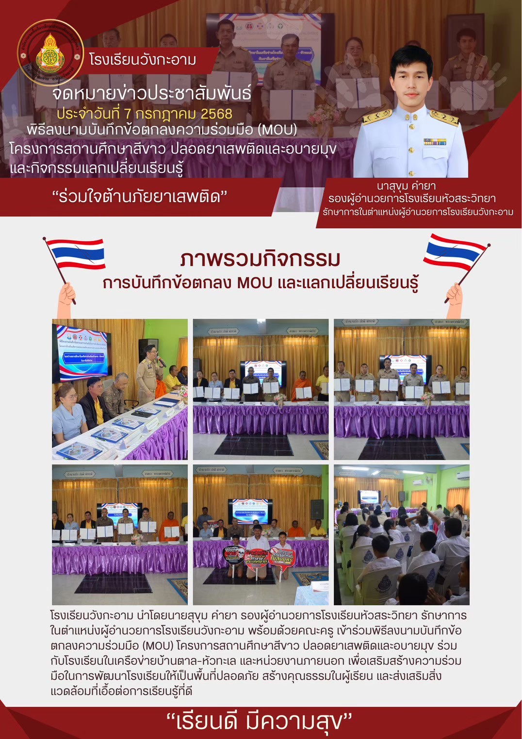 2 | พิธีลงนามบันทึกข้อตกลงความร่วมมือ (mou) และแลกเปลี่ยนเรียนรู้ โครงการสถานศึกาาสีขาว ปลอดยาเสพติดและอบายมุข