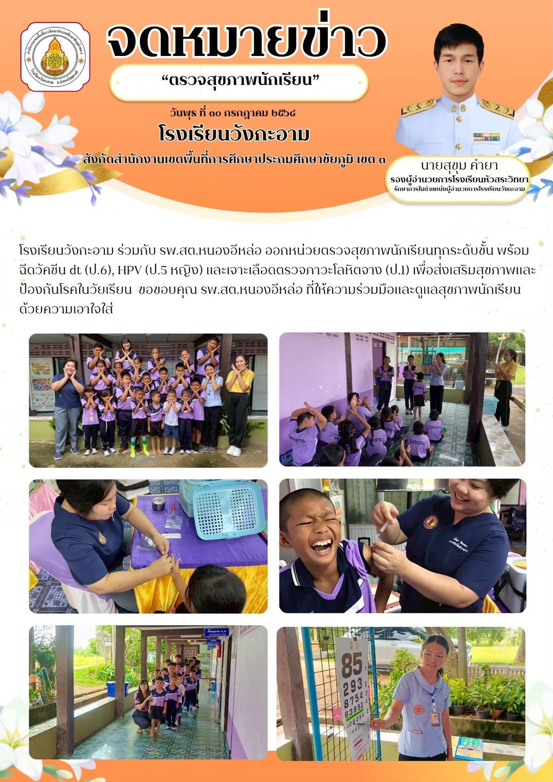 7 | รพ.สต.หนองอีหล่อ ออกหน่วยตรวจสุขภาพนักเรียนทุกระดับชั้น ตรวจคัดกรองสายตาทุกระดับชั้น ฉีดวัคซีน dt (ป.6), hpv (ป.5)