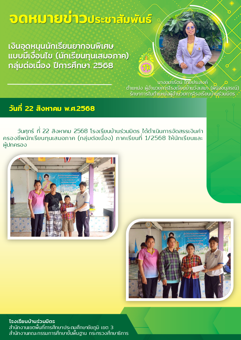 เงินอุดหนุนนักเรียนยากจนพิเศษแบบมีเงื่อนไข (นักเรียนทุนเสมอภาค) กลุ่มต่อเนื่อง ปีการศึกษา 2568