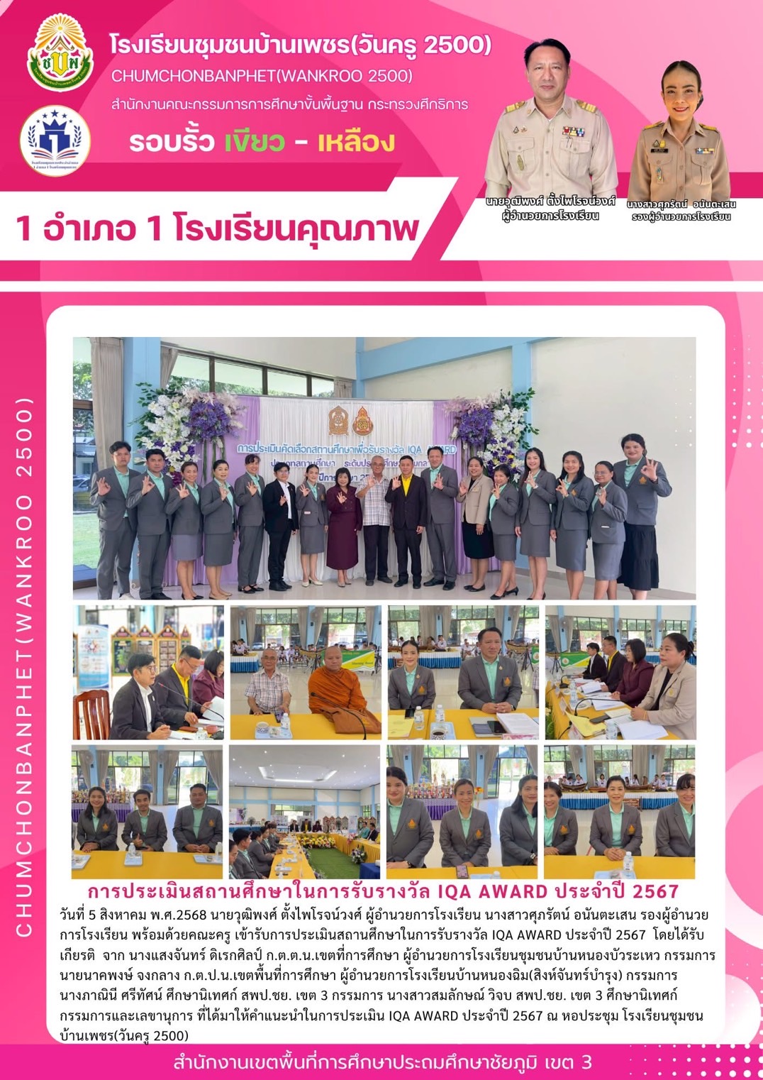 1 | วันที่ 5 สิงหาคม 2568 "การประเมิน IQA สถานศึกษาในการรับรางวัล IQA AWARD ประจำปี 2567"