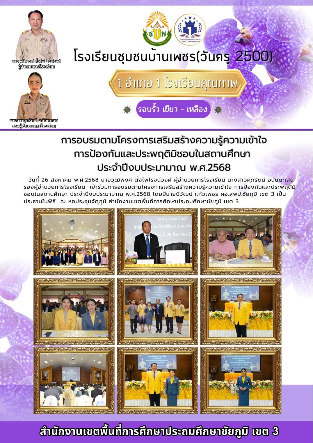 6 | วันที่ 26 สิงหาคม 2568 "การอบรมโครงการเสริมสร้างความรู้ความเข้าใจการป้องกันและประพฤติมิชอบในสถานศึกษา ประจำปี พ.ศ. 2568"