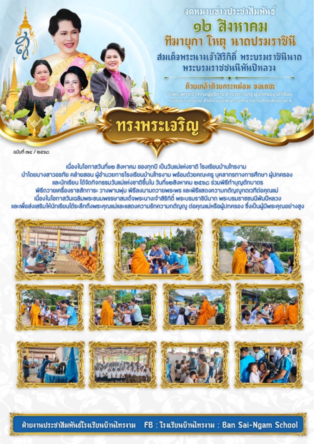 2 | กิจกรรมวันแม่แห่งชาติ โรงเรียนบ้านไทรงาม นำโดยนางสาวอรทัย คล้ายสอน คณะครูบุคลากรทางการศึกษา คณะกรรมการสถานศึกษาขั้นพ้นฐาน ผู้ปกครอง นักเรียนโรงเรียนบ้านไทรงาม ร่วมพิธีลงนามถวายพระพรชัยมงคล เนื่องในวันแม่แห่งชาติ