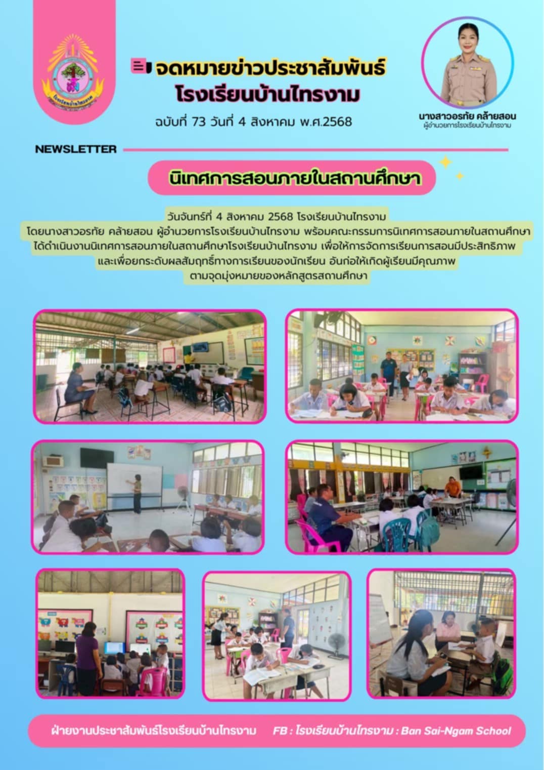1 | โรงเรียนบ้านไทรงาม โดยนางสาวอรทัย คล้ายสอน ผู้อำนวยการโรงเรียนบ้านไทรงาม พร้อมคณะกรรมการนิเทศการสอนภายในสถานศึกษา เพื่อให้การจัดการเรียนการสอนมีประสิทธิภาพเพื่อยกระดับผลสัมฤทธิ์ทางการเรียนของนักเรียน อันก่อให้เกิดผู้เรียนมีคุณภาพตามจุดมุ่งหมายของหลักสูตรสถานศึกษา
