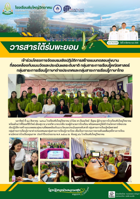 8 | เข้าร่วมโครงการจัดอบรมเชิงปฏิบัติการสร้างแบบทดสอบคู่ขนาน ที่สอดคล้องกับแบบวัดและประเมินผลระดับชาติ กลุ่มสาระการเรียนรู้คณิตศาสตร์ กลุ่มสาระการเรียนรู้ภาษาต่างประเทศและกลุ่มสาระการเรียนรู้ภาษาไทย |
