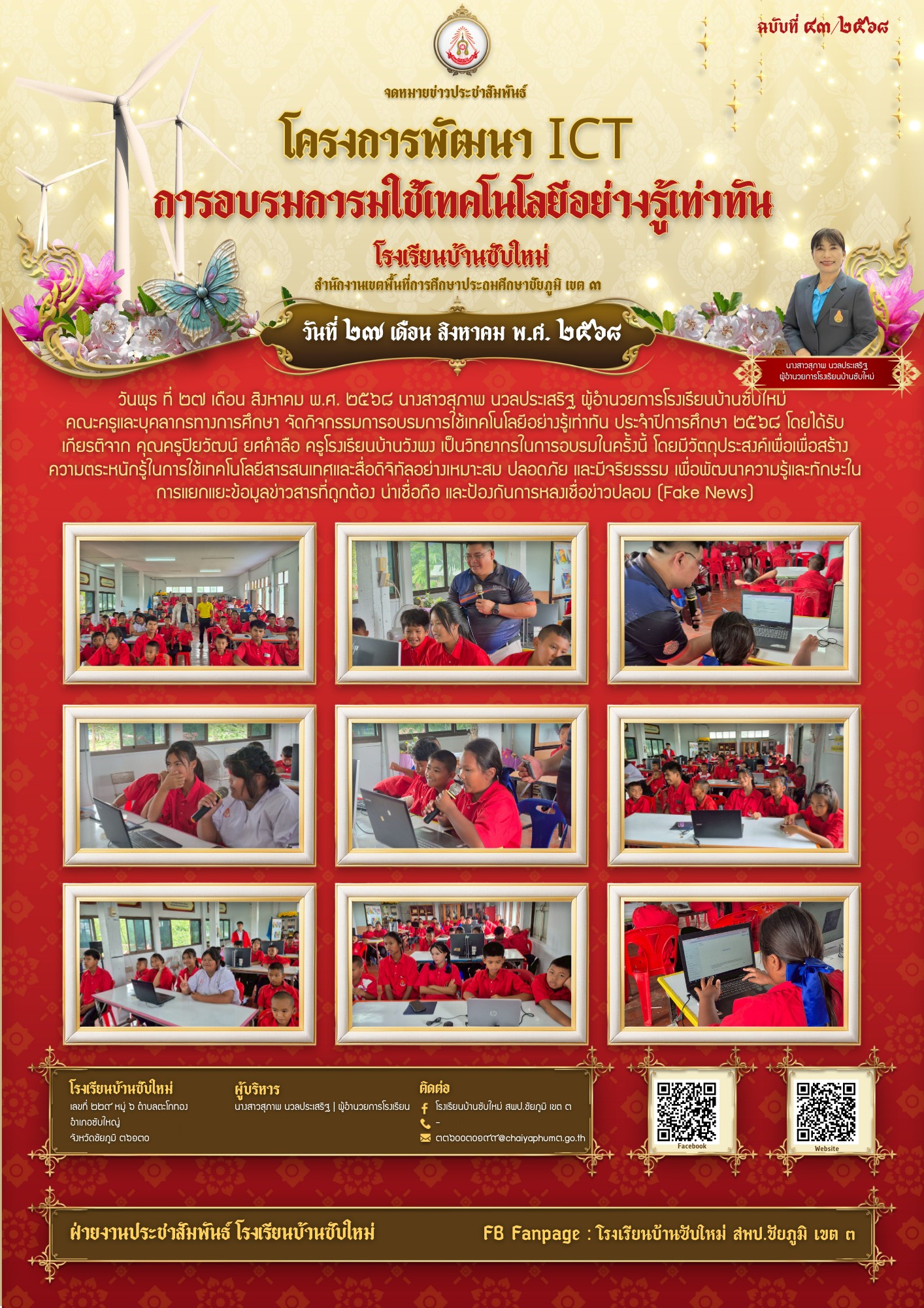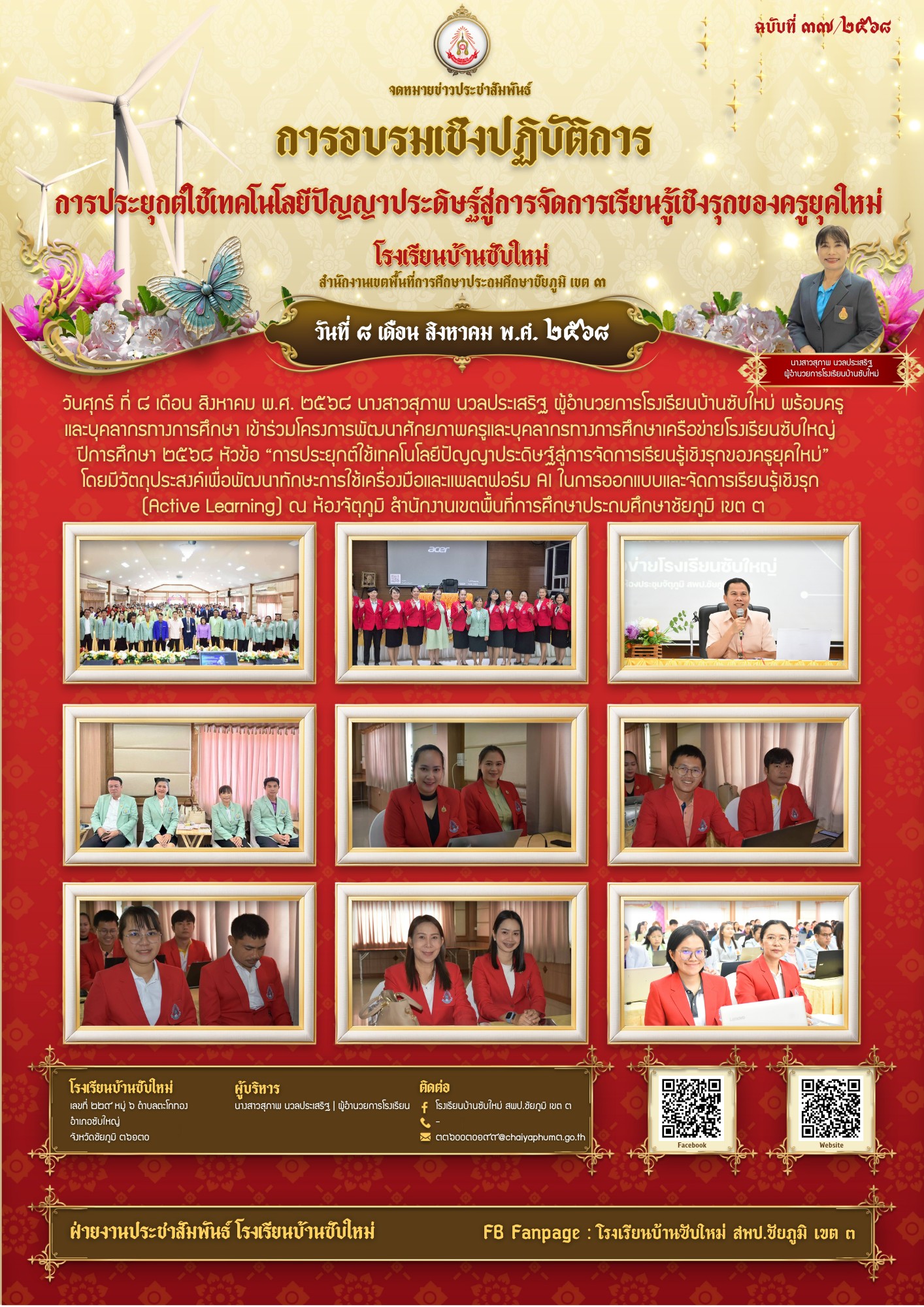 3 | วันศุกร์ ที่ ๘ เดือน สิงหาคม พ.ศ. ๒๕๖๘ นางสาวสุภาพ นวลประเสริฐ ผู้อำนวยการโรงเรีียนบ้านซับใหม่ พร้อมครูและบุคลากรทางการศึกษา เข้าร่วมโครงการพัฒนาศักยภาพครูและบุคลากรทางการศึกษาเครือข่ายโรงเรียนซับใหญ่ ปีการศึกษา ๒๕๖๘ หัวข้อ “การประยุกต์ใช้เทคโนโลยีปัญญาประดิษฐ์สู่การจัดการเรียนรู้เชิงรุกของครูยุคใหม่”
