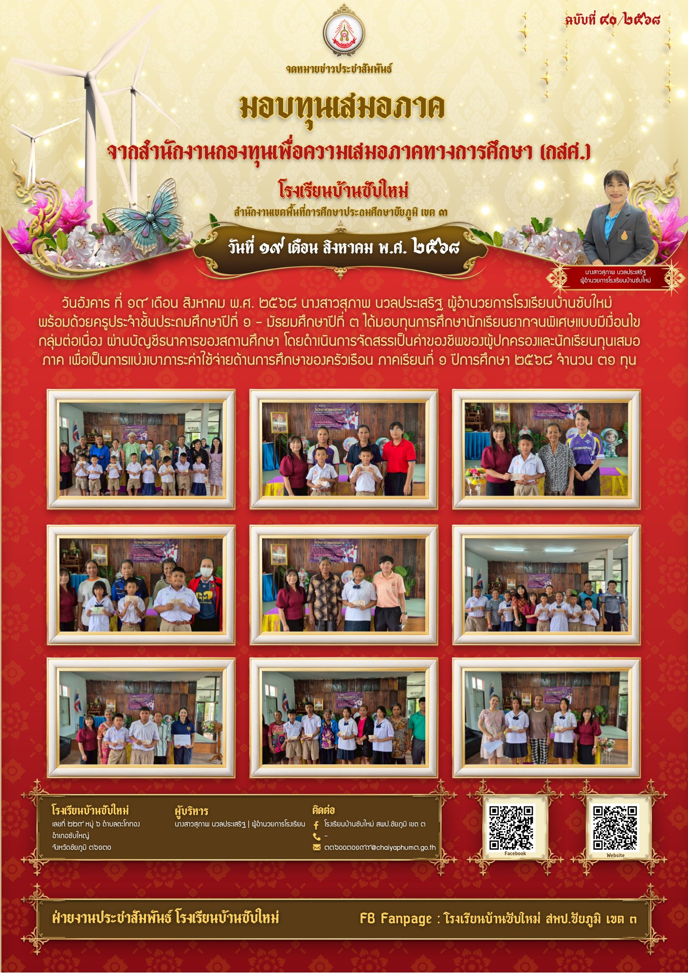 8 | วันพุธ ที่ ๒๗ เดือน สิงหาคม พ.ศ. ๒๕๖๘ นางสาวสุภาพ นวลประเสริฐ ผู้อำนวยการโรงเรียนบ้านซับใหม่