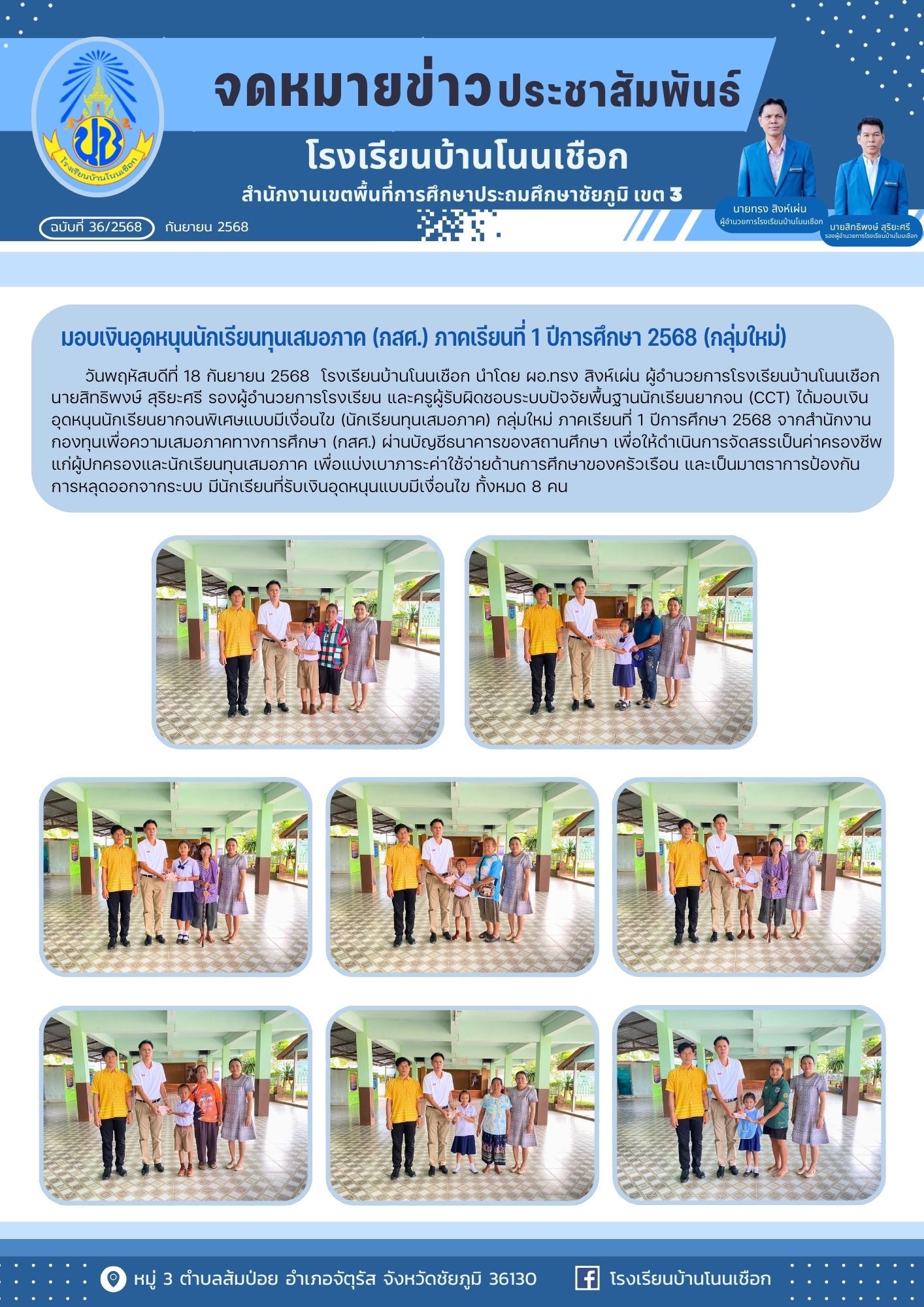 3 | มอบเงินอุดหนุนนักเรียนทุนเสมอภาค (กสศ.) ภาคเรียนที่ 1 ปีการศึกษา 2568 (กลุ่มใหม่)