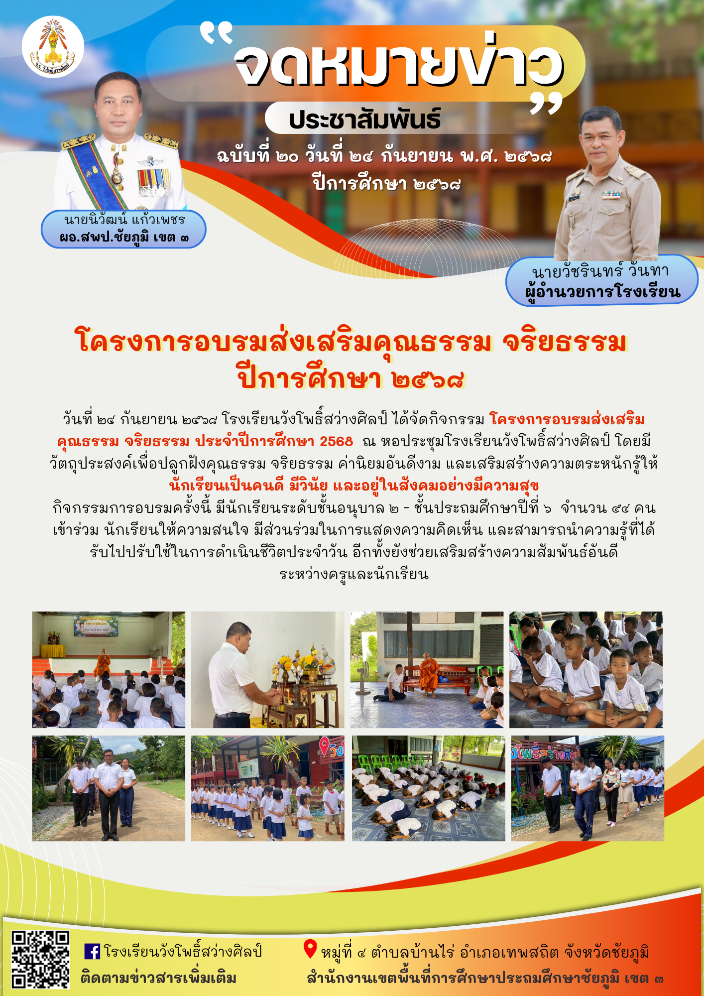 3 | โครงการอบรมส่งเสริมคุณธรรม จริยธรรม ปีการศึกษา ๒๕๖๘