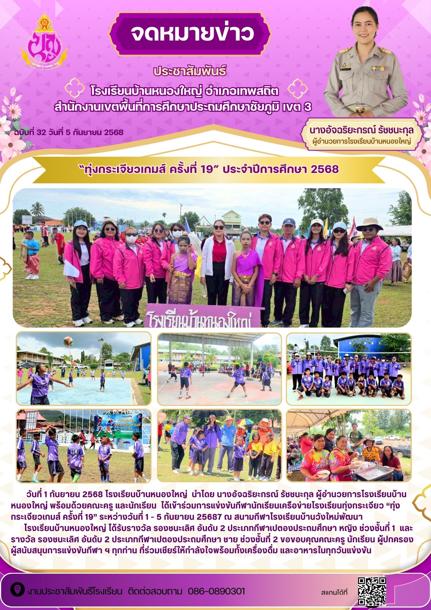 7 | เข้าร่วมการแข่งขันกีฬานักเรียนเครือข่ายโรงเรียนทุ่งกระเจียว “ทุ่งกระเจียวเกมส์ ครั้งที่ 19” ระหว่างวันที่ 1 - 5 กันยายน 2568 ณ สนามกีฬาโรงเรียนบ้านวังใหม่พัฒนา
