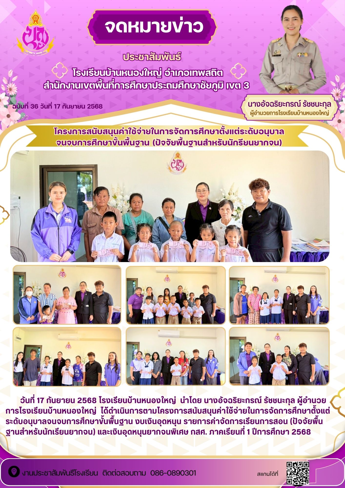 4 | ดำเนินการตามโครงการสนับสนุนค่าใช้จ่ายในการจัดการศึกษาตั้งแต่ระดับอนุบาลจนจบการศึกษาขั้นพื้นฐาน งบเงินอุดหนุน รายการค่าจัดการเรียนการสอน (ปัจจัยพื้นฐานสำหรับนักเรียนยากจน) และเงินอุดหนุนยากจนพิเศษ กสศ. ภาคเรียนที่ 1 ปีการศึกษา 2568