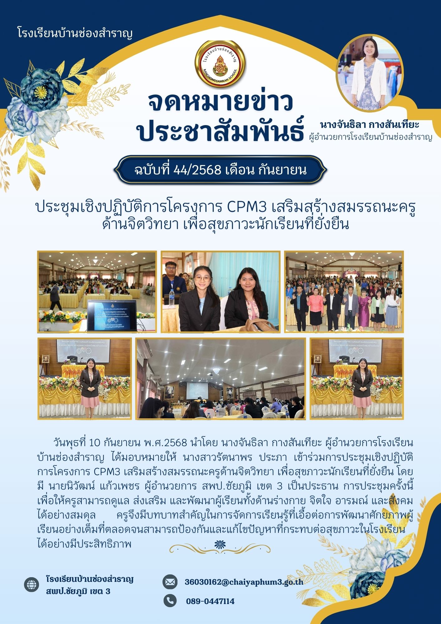 ประชุมเชิงปฏิบัติการโครงการ CPM3 เสริมสร้างสมรรถนะครู ด้านจิตวิทยา เพื่อสุขภาวะนักเรียนที่ยั่งยืน