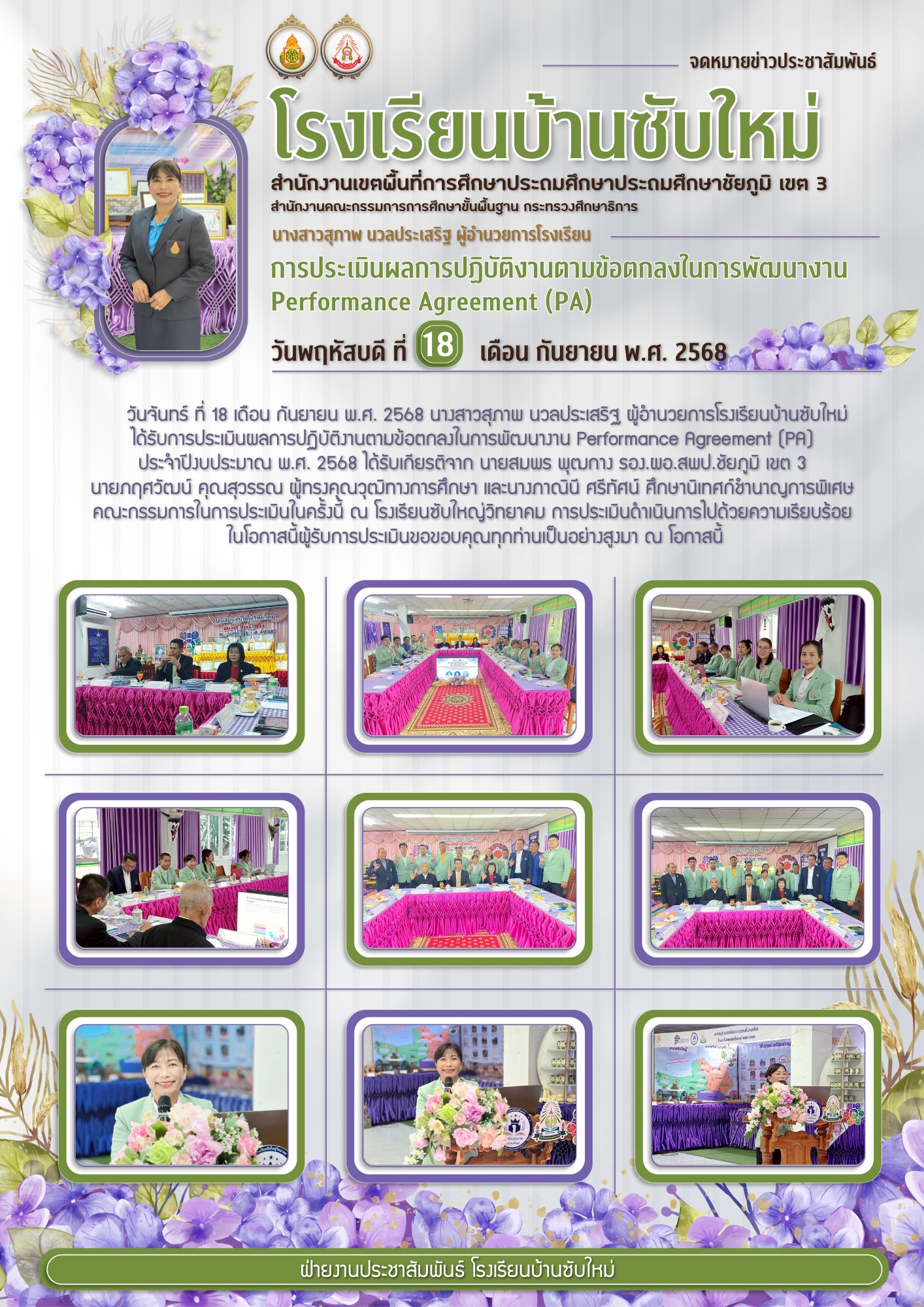 ประจำปีงบประมาณ พ.ศ. 2568 ได้รับเกียรติจาก นายสมพร พุฒกาง รอง.ผอ.สพป.ชัยภูมิ เขต 3