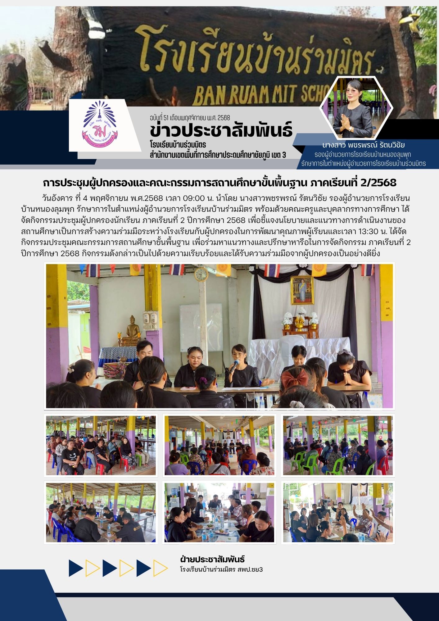 | 3 | การประชุมผู้ปกครองและคณะกรรมการสถานศึกษาขั้นพื้นฐาน ภาคเรียนที่ 2/2568