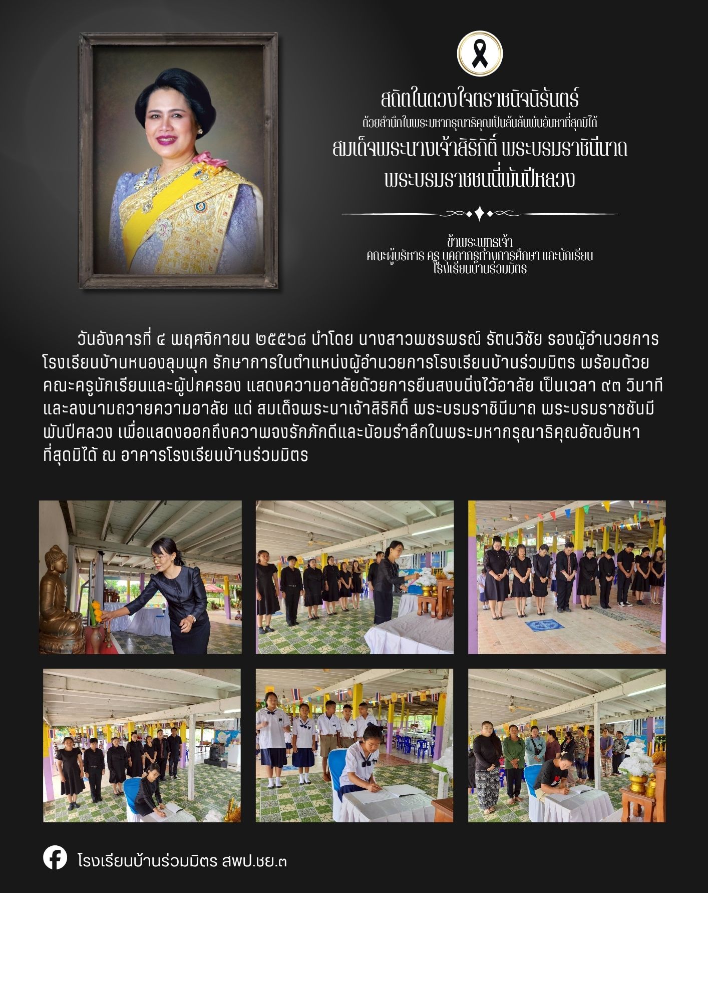 สถิตในดวงใจตราชนิจนิรันตร์ ด้วยสำนึกในพระมหากรุณาธิคุณเป็นล้นล้นพันอันหาที่สุดมิได้ สมเด็จพระนางเจ้าสิริกิติ์ พระบรมราชินีนาถ พระบรมราชชนนี่พันปีหลวง