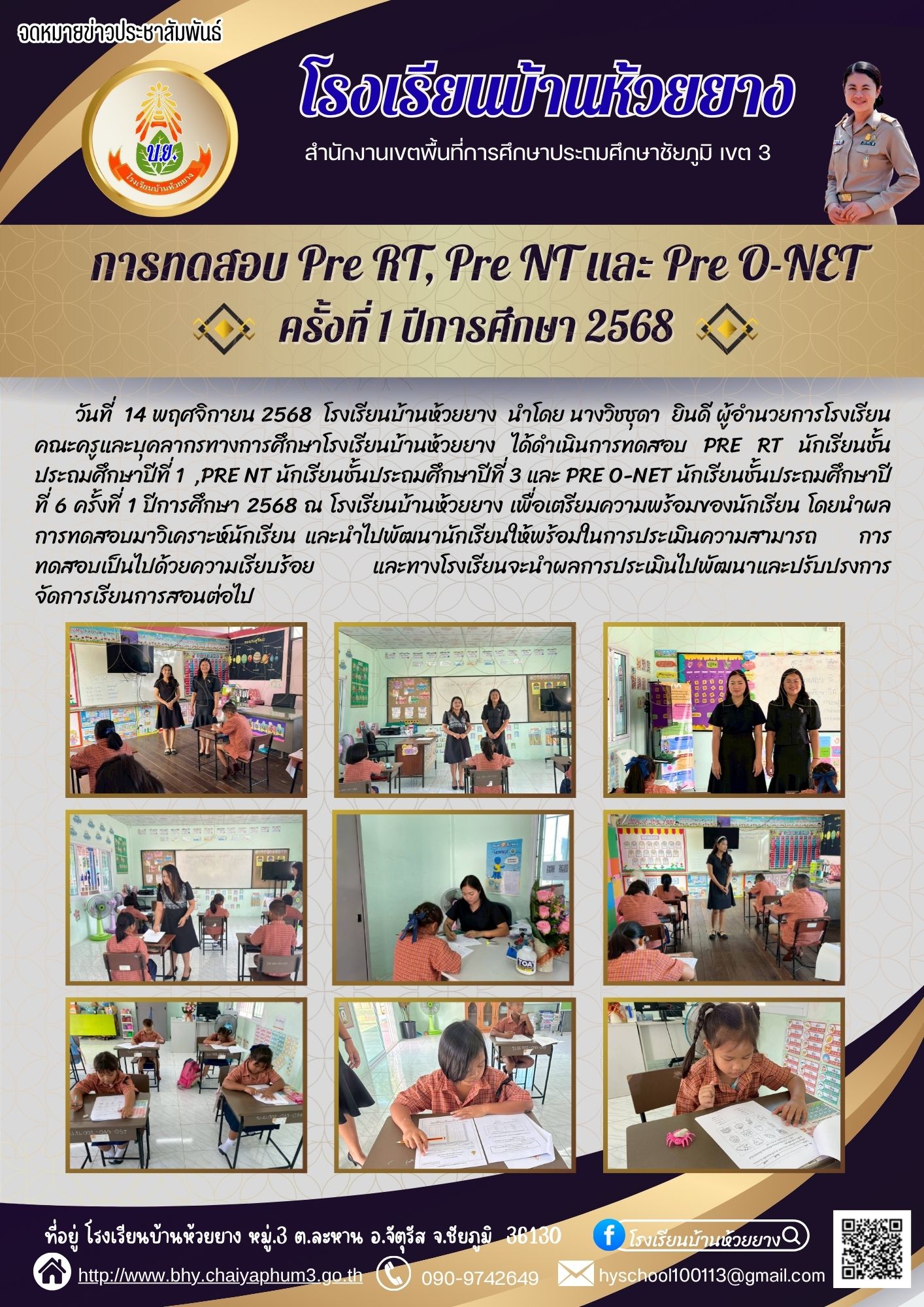 การทดสอบ Pre RT, Pre NT และ Pre O-NET ครั้งที่ 1 ปีการศึกษา 2568