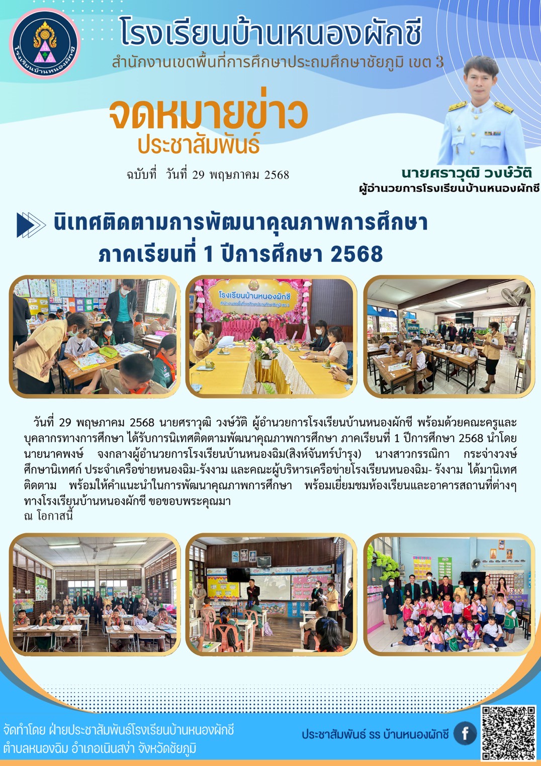 วันอังคารที่ 11 พฤศจิกายน 2568 นายศราวุฒิ วงษ์วัติ ผู้อำนวยการโรงเรียนบ้านหนองผักชี พร้อมด้วยคณะครูและบุคลากรทางการศึกษา ได้รับการนิเทศติดตามพัฒนาคุณภาพการศึกษา ภาคเรียนที่ 2 ปีการศึกษา 2568 นำโดย สิบเอกสมเกียรติ บุญสูงเนิน รอง ผอ. สพป. ชัยภูมิ เขต ๓ นางสาวอัญญ์นิตา ต่อสกุล ศึกษานิเทศก์ ประจำเครือข่ายหนองฉิม-รังงาม และคณะผู้บริหารเครือข่ายโรงเรียนหนองฉิม- รังงามได้มานิเทศ ติดตาม พร้อมให้คำแนะนำในการพัฒนาคุณภาพการศึกษา พร้อมเยี่ยมชมห้องเรียนและอาคารสถานที่ต่างๆ ทางโรงเรียนบ้านหนองผักชี ขอขอบพระคุณมา ณ โอกาสนี้