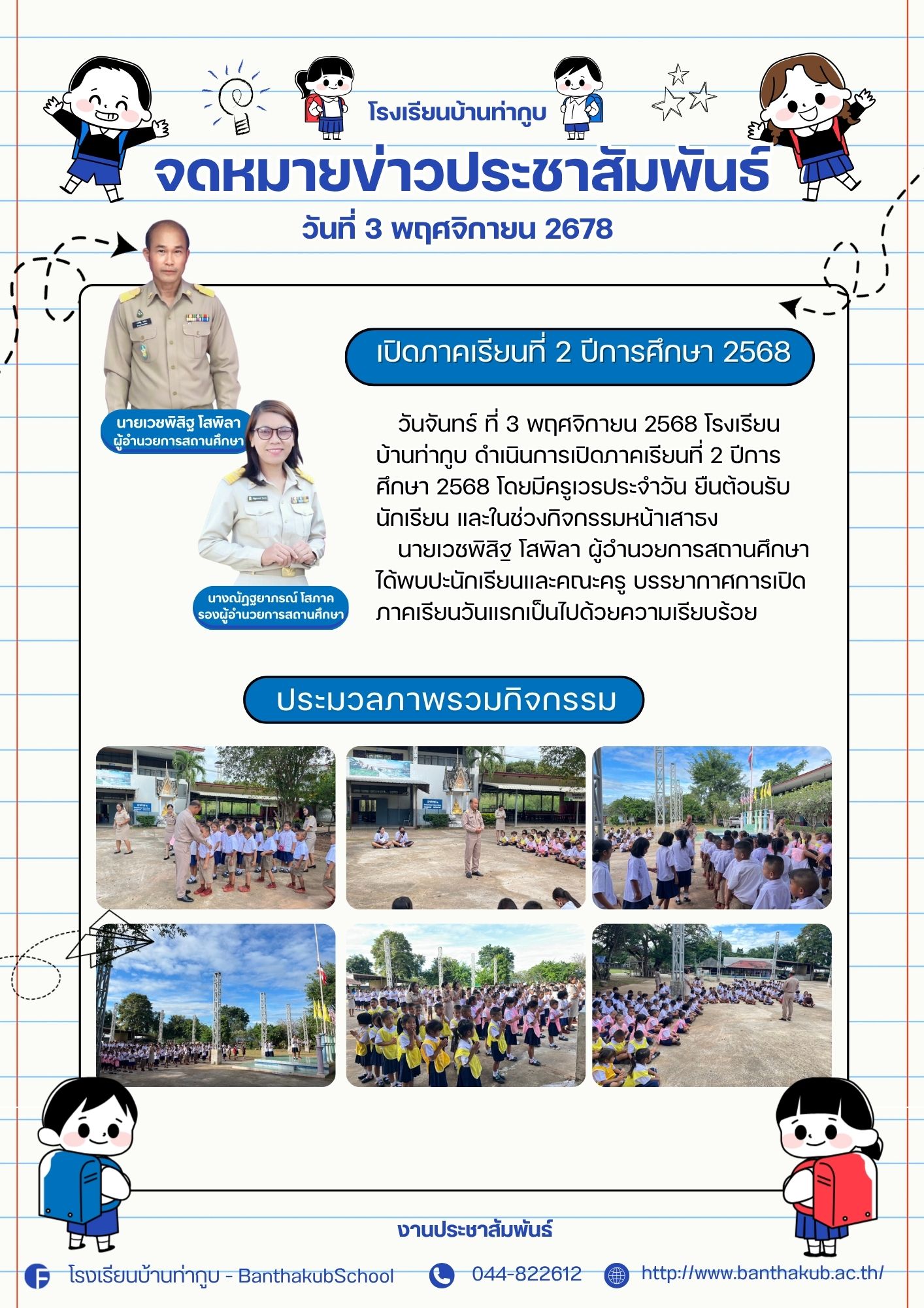| 1 | เปิดภาคเรียนที่ 2 ปีการศึกษา 2568