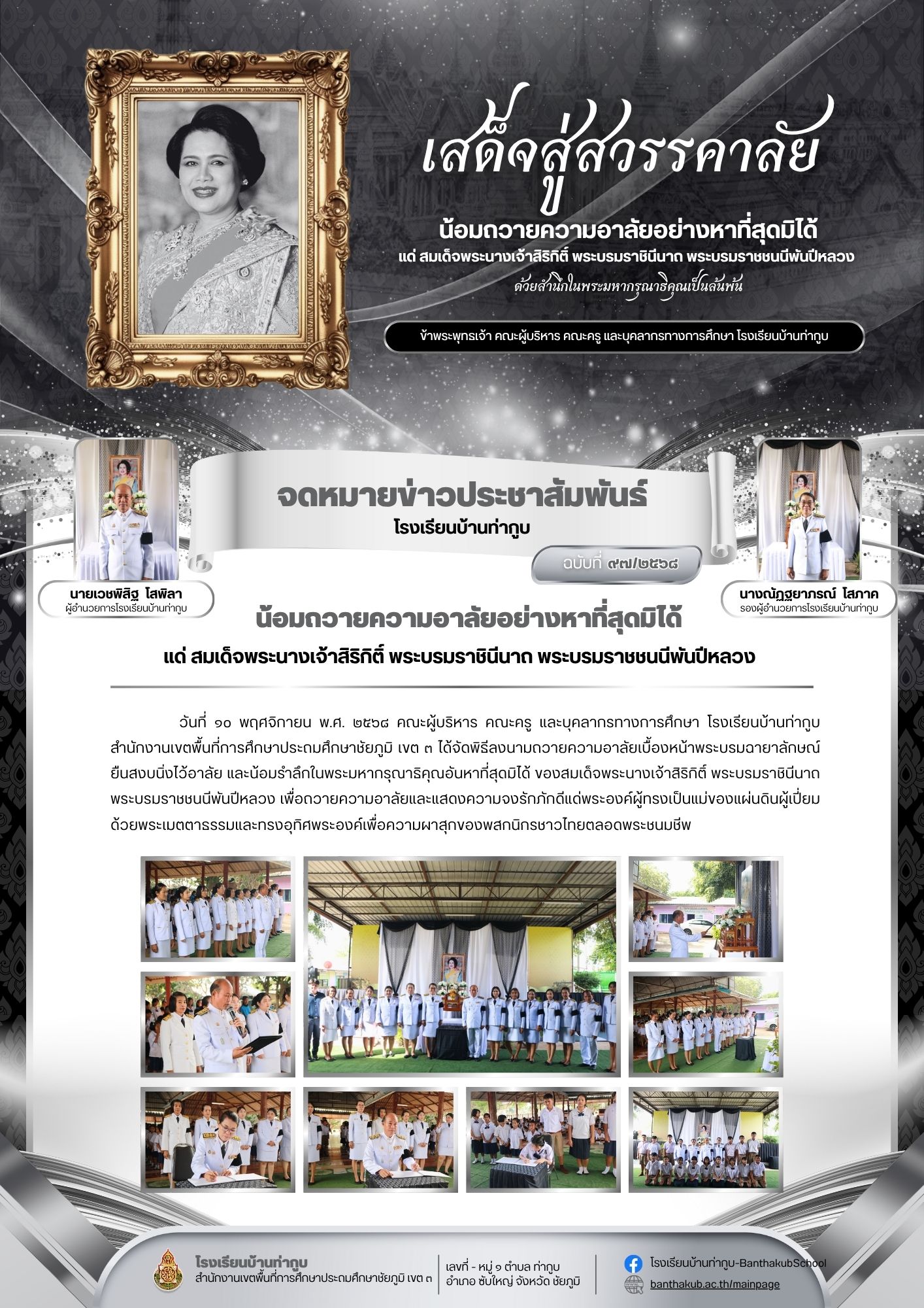 | 2 | น้อมถวายความอาลัยอย่างหาที่สุดมิได้ แด่ สมเด็จพระนางเจ้าสิริกิติ์ พระบรมราชินีนาถ พระบรมราชชนนีพันปีหลวง