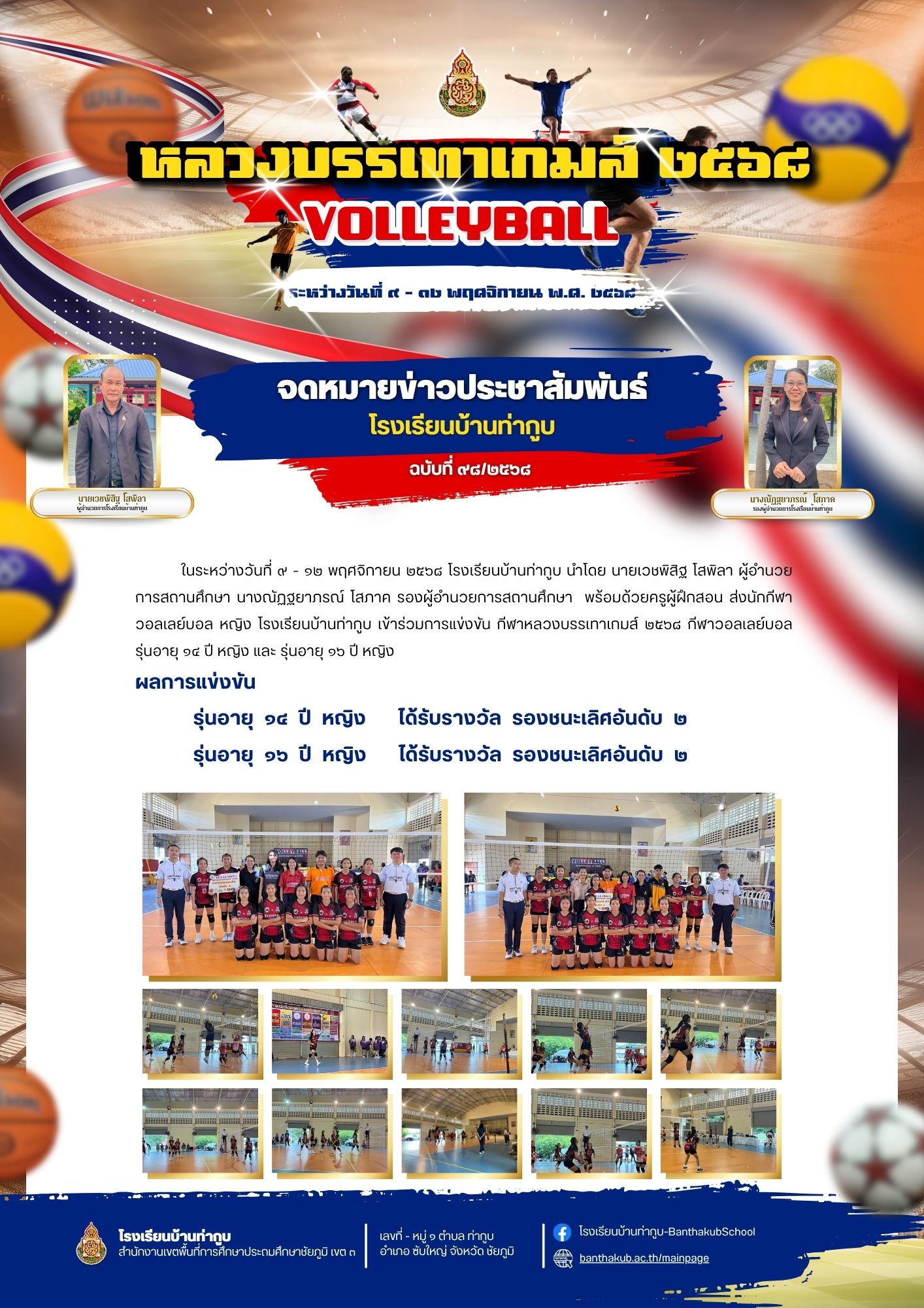 | 6 | การแข่งขัน กีฬาหลวงบรรเทาเกมส์ ๒๕๖๘ กีฬาวอลเลย์บอล รุ่นอายุ ๑๔ ปี หญิง และ รุ่นอายุ ๑๖ ปี หญิง