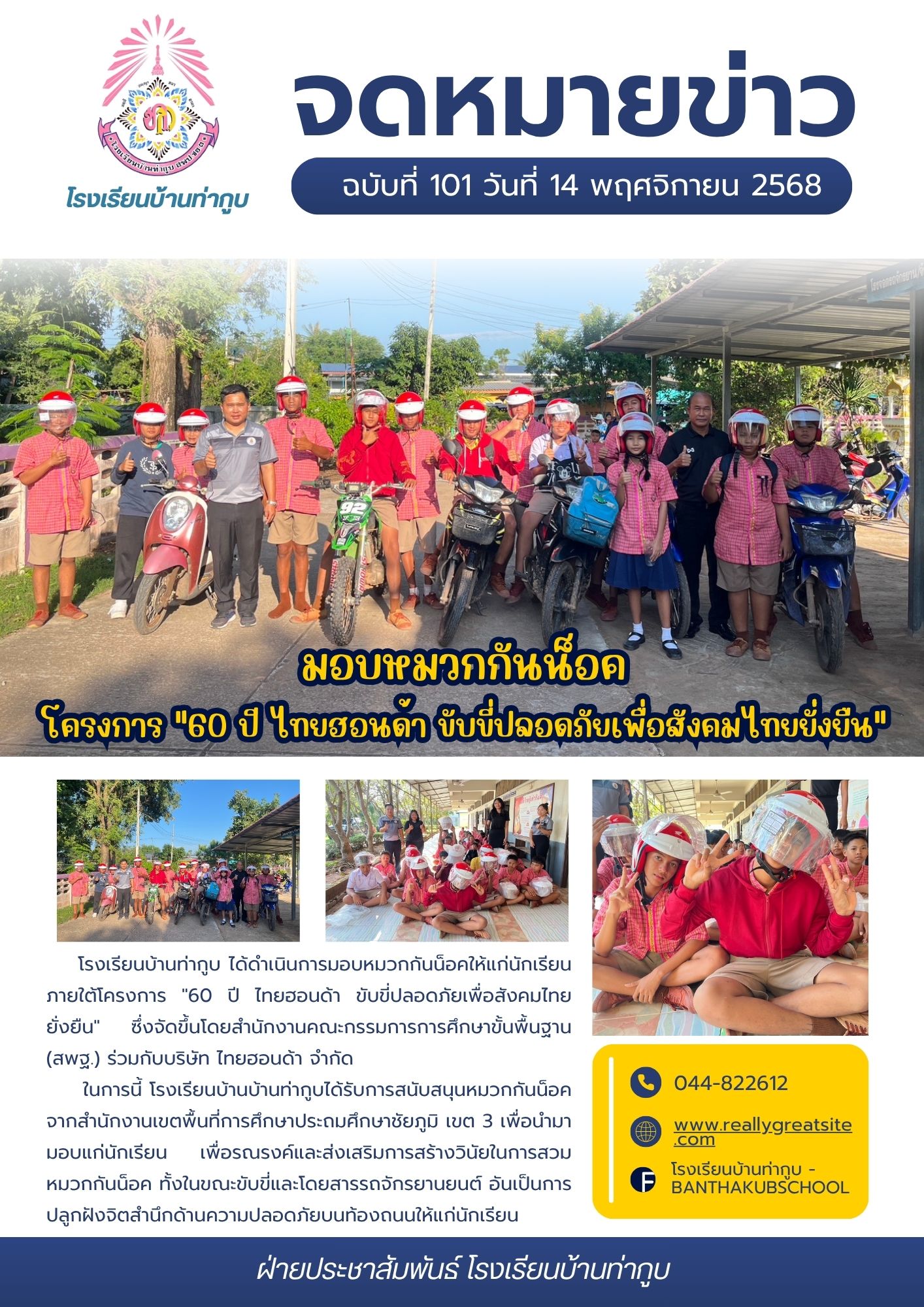| 8 | มอบหมวกกันน็อคโครงการ "60 ปี ไทยฮอนด้า ขับขี่ปลอดภัยเพื่อสังคมไทยยั่งยืน" |