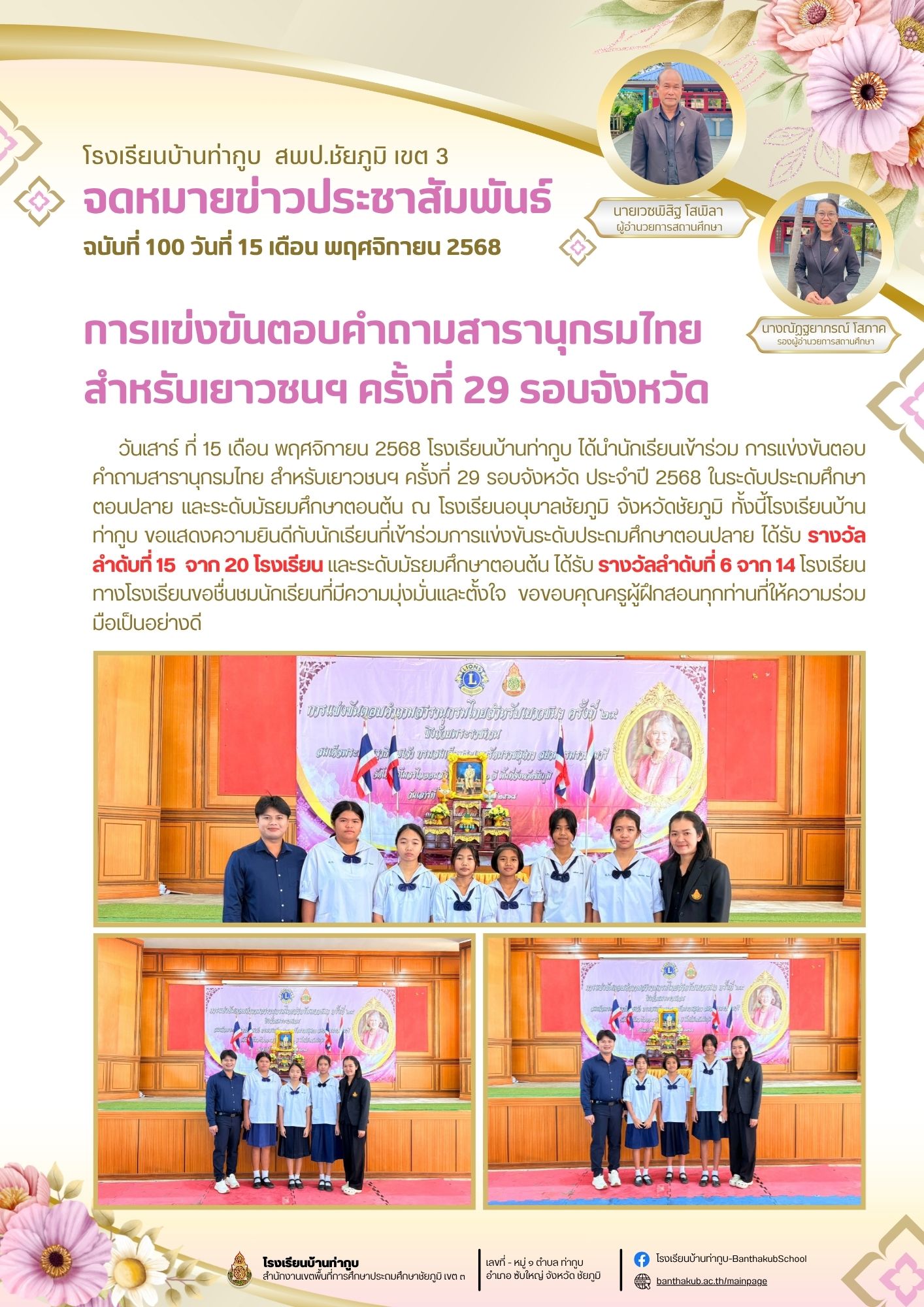 | 9 | การแข่งขันตอบคำถามสารานุกรมไทยสำหรับเยาวชนฯ ครั้งที่ 29 รอบจังหวัด |